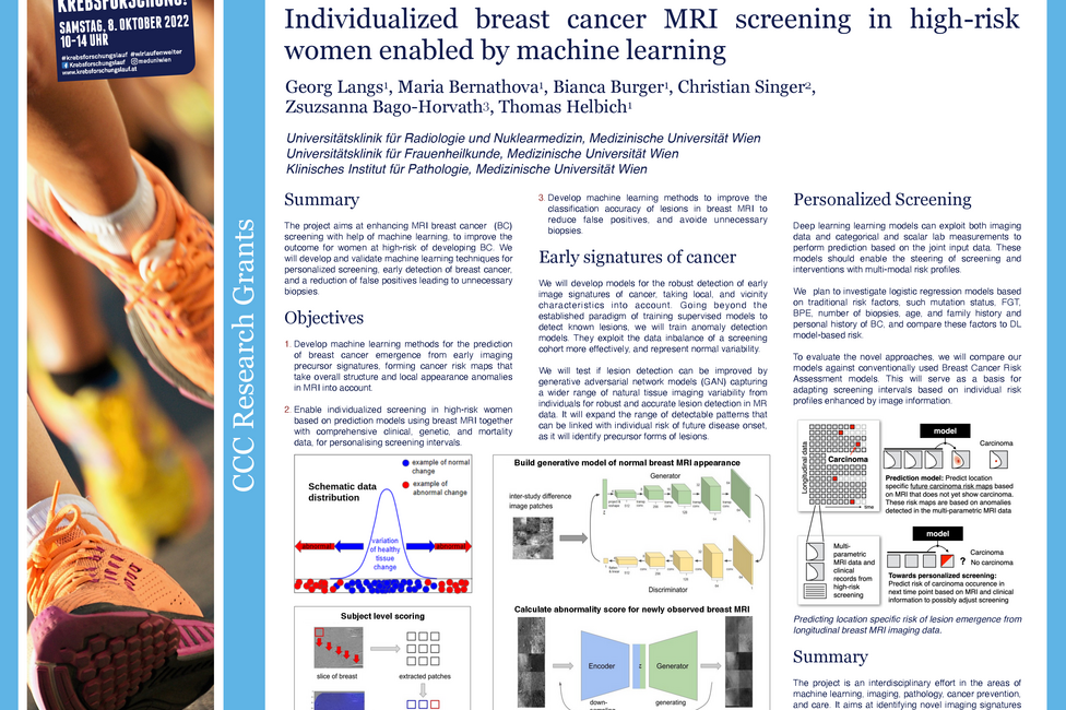 15 bis 20 Prozent der Brustkrebsfälle haben genetische Ursachen. Frauen, bei denen gewisse Mutationen nachgewiesen werden, haben ein 20-fach erhöhtes Risiko im Laufe ihres Lebens Brustkrebs zu entwickeln. Das Ziel der ForscherInnen um Langs ist es, Computerprogramme so zu trainieren, dass sie subtile Veränderungen des Gewebes besser erkennen und auch beurteilen können. Dafür entwickelt er unter anderem Algorithmen, die bei der Einschätzung helfen sollen, ob sich aus Anomalien im Gewebe, die im MRT sichtbar werden, Brustkrebs entwickeln könnte. Damit würde eine individualisierte Risikoabschätzung möglich werden.